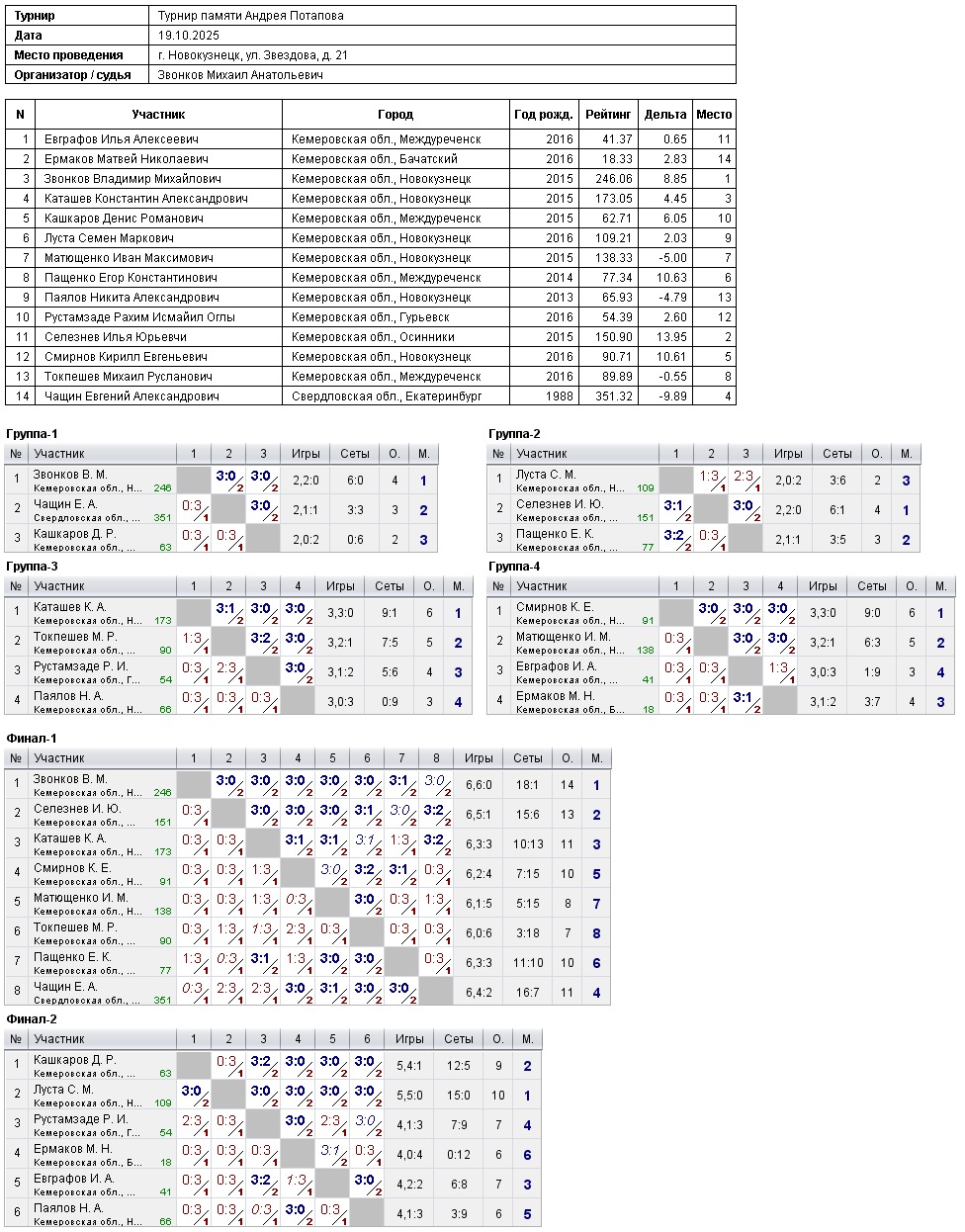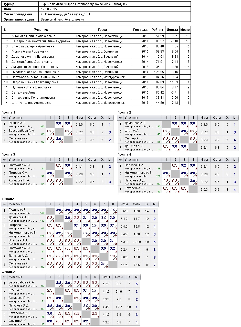 РЕЗУЛЬТАТЫ: Памяти А.Потапова Ветераны Итоги